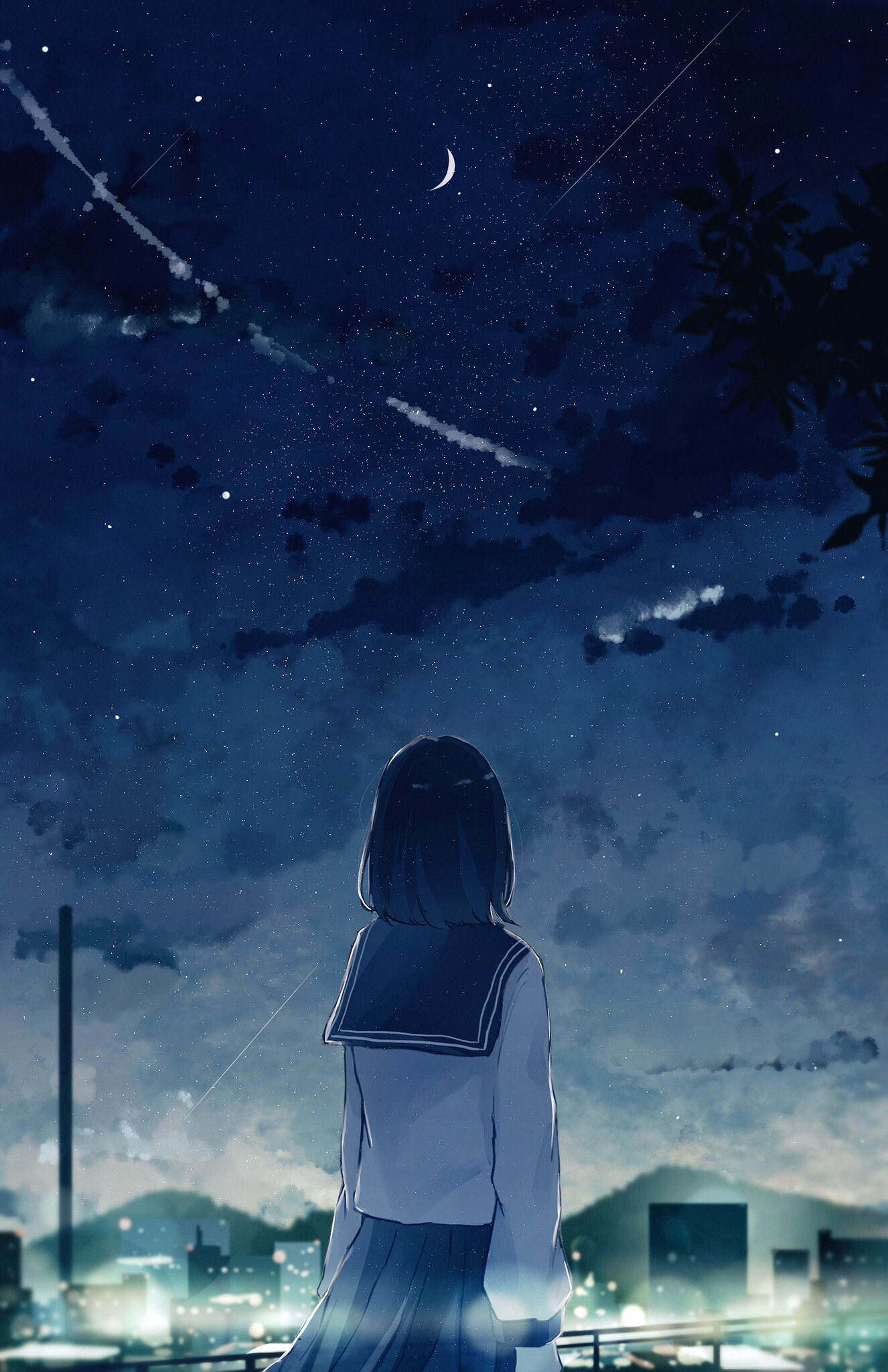 凜月 En Twitter このイラスト描いた方どなたかご存知ではありませんか 後ろ姿 イラスト 女の子 宇宙 月